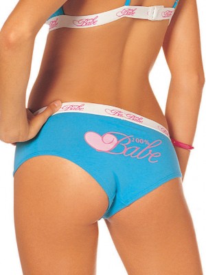 Značkové bavlněné pohodlné šortky s nápisem 100% BABE a gumou v pase v kontrastní barvě také s tímto emblémem.