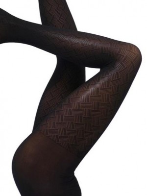 40 DEN mají tyto luxusní punčocháče s geometrickým vzorem. Klínek je bavlněný, pata a špička bez zesílení