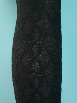 V těchto punčocháčích se opravdu zahřejete! Zimní vzor s copánky skutečně navozuje zimní atmosféru. Pata ani špička nejsou zesílené. Ukončení v pasu je pohodlné - neroluje se.