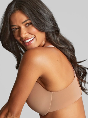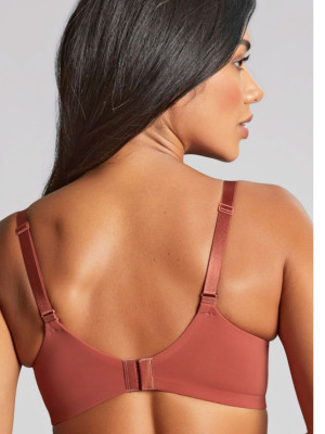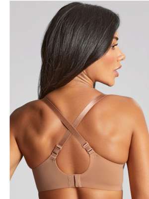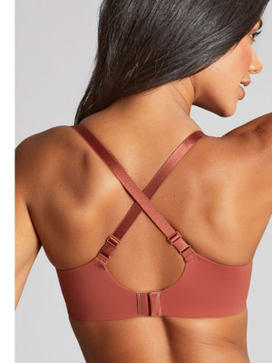 Hladká, téměř bezešvá podprsenka má vyšší střed a na horním okraji košíčku je bezešvá tzv. druhá kůže - přechod není pod oblečením vidět. Další zajímavost je, že se vzadu dají ramínka překřížit pomocí jednoduchého klipu.