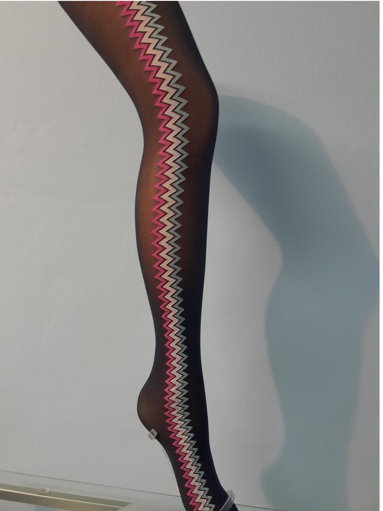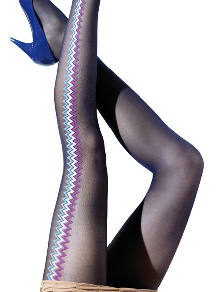 Hladké punčocháče /40 DEN/ mají po stranách vícebarevné cik cak pásky. S podobným vzorem jsou i ponožky ECA-5866.5.34