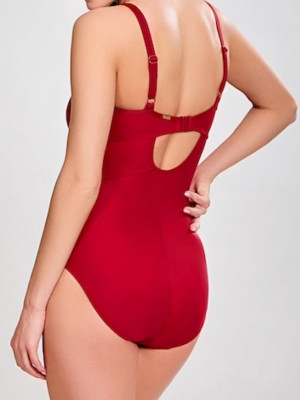 Černá a červená alternativa pro velké ženy s velkým poprsím. To, že černá zeštíhluje, víme všechny, ale tyto plavky i lehce stáhnou. Vnitřní přední díl je totiž podšitý resp. zdvojený. Košíky jsou podšité elastickým tylem a podepřeny důkladnou kosticí. Zapínání je vzadu na plastový klip. Ramínka jsou nastavitelná, takže se hodí pro velké i malé plavkyně.