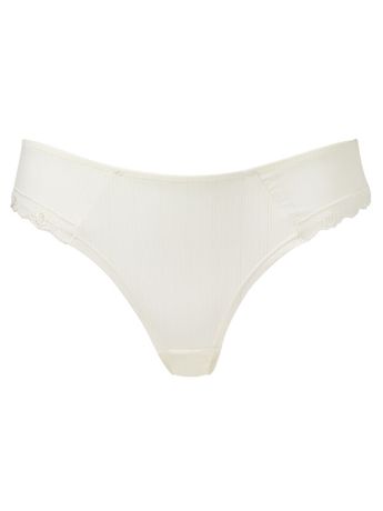 Kalhotky Porcelain Viva jsou klasického střihu, ale mají řadu ozvláštněných detailů, které z nich dělají parádní kousek do vašeho šatníku. Kalhotky na přední části mají svislou strukturu, na bocích je spodní lem doplněný krajkou, která krásně splývá na bocích.