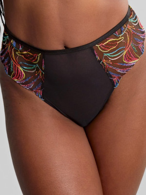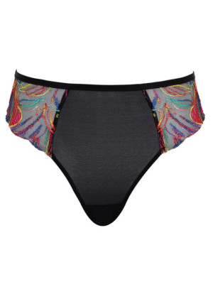 Bezvadně střižené kalhotky - ač vyšší na bocích nezkracují nohu. Zadní díl poloprůsvitný, přední s abstraktním motivem.