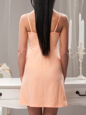 Pohodlná na omak příjemná noční košilka má prostřižený živůtek a na něm sámky z jemné krajky.