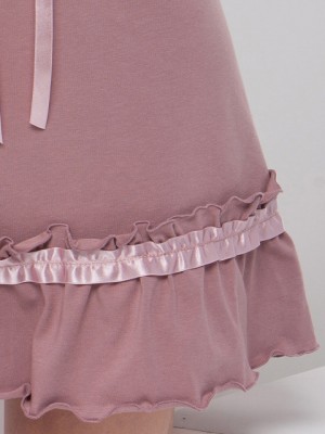 Něžná košilka s ramínka má kolem hlubokého výstřihu oválný volánek - taktéž spodní díl je zdoben stejným způsobem.