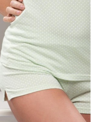 Bavlněné pyžamo nejen pro mladá děvčata se skládá z pohodlných šortek a topu na ramínka, který je pod prsy prostřižený.
