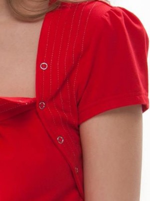 Bavlněné pyžamo s tříčtvrtečními volnými kalhotami do gumy a topem s krátkým rukávem je vhodné jak pro nastávající maminky tak i po narození dítěte - odepínání usnadní přístup ke kojení.
