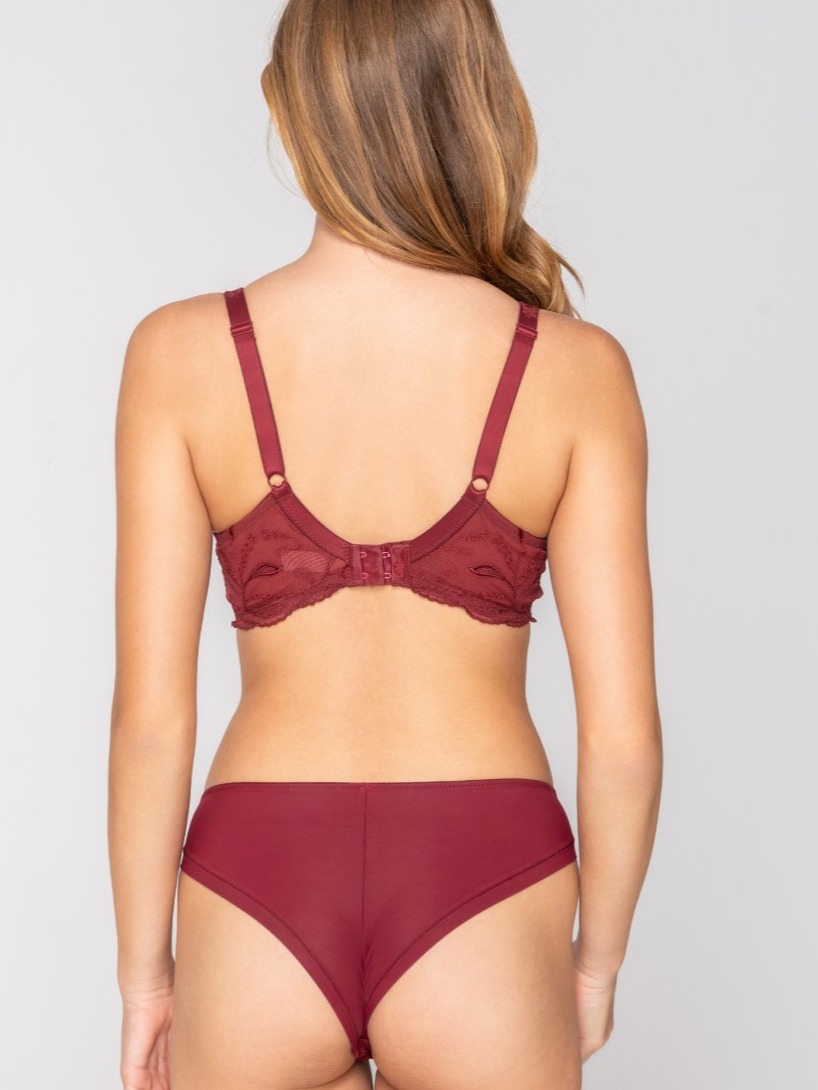 Luxusní kalhotky v brazilském střihu jsou na předním dílu zdobené výšivkou, zadní díl je hladký.