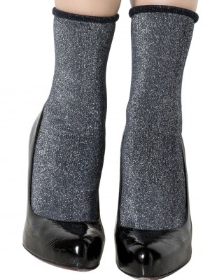 Bavlněné ponožky s kovovým leskem a s velmi příjemným ukončením do ruličky vhodně doplní váš outfit se sukní nebo krátkými nebo dlouhými kalhotami.