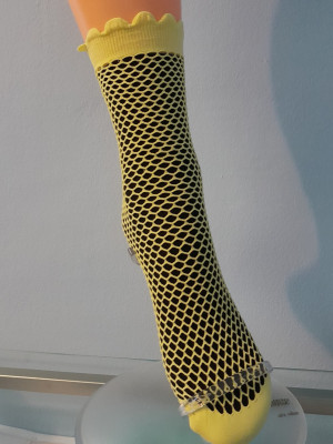 Hladké černé tenké ponožky tvoří základ. na nich je druhá ponožka, která je tvořena hustou síťkou.