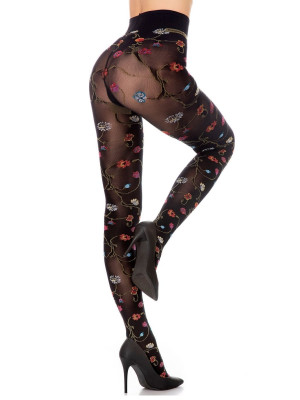 luxusní punčocháče s barevnou výšivkou Platino