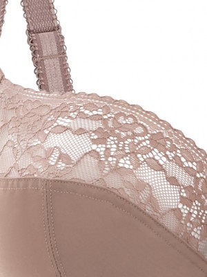 Nádherná podprsenka z řady Sculptresse pro dámy s křivkami je v barvě světlého kakaa. Má dva svislé švy a společně s kosticí dokonale podepře vaše prsa. Na horním okraji košíčku je pro ozdobu velejemná mírně elastická krajka, která podprsenka přidává na eleganci a ženskosti. Zadní díl podprsenky je hladký, velmi příjemný na omak. Ramínka jsou široká, aby se nezařezávala a elegantně zdobená. Podprsenka má zapínání na dva háčky ve třech polohách.
