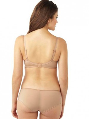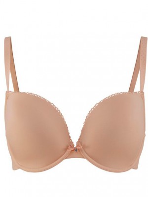 Mladistvá vyztužená podprsenka s push up efektem ve větších košíčcích je hladká, bezešvá. Mírně pružná ramínka s malinkými lesklými puntíčky jsou nastavitelná, zapínání vzadu je ve třech polohách na dva háčky. Horní okraj podprsenky je ozdoben jemnými krajkovými vroubečky.
