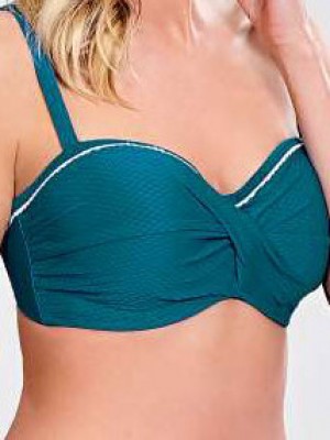 Stále víc oblíbený tvar podprsenky plavek ve tvaru bandeau je tentokrát v barvě lagoon. Klasické kalhotky PAN-CW1046 tvoří set. Firma Panache dodává na trh tento tvar bandeau, který se vyznačuje tím, že je v košíčcích od D do G, resp. H. Tyto plavky se nechají nosit bezpečně i bez ramínek a dokonce v nich některé ženy hrají volejbal a prsa a plavky jsou na stejném místě, jak mají. Stejný tvar ale jiný vzor najdete pod kódy PAN-SW0893, PAN-SW0883 nebo PAN-CW0105