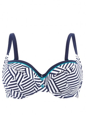 Plavky na velká prsa až do velikosti košíčku J jsou tentokrát s geometrickým vzorem, které přivítají s jasným vkusem bez zbytečných kudrlinek. Přesto jsou ozdobené tyrkysovým prýmkem kolem horního okraje košíčku. v téže barvě jsou i malé knoflíčky. Hezdy plavky oživí a dají tak možnost využít i jiné kalhotky než černo /resp. tmavě modré/ bílé kombinace. Kalhotky mají kód PAN-CW0279. A ty tyrkysové jsou PAN-SW0967.