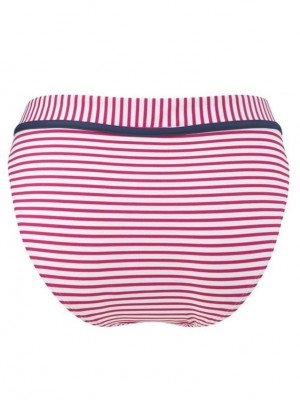 Kalhotky k vrchnímu dílu plavek PAN-CW0063 jsou nizké s plnější zadní částí a zdobené jsou stejně jako podprsenka pásek vertikálních proužků s modrým lemem. Velikost kalhotek odpovídá těm našim. Velmi podobné jsou kalhotky PAN-SW0561, které ladí s podprsenkou PAN-SW0560. Ještě se hodí červené kalhotky PAN-SW0364 anebo šortky PAN-SW0399.