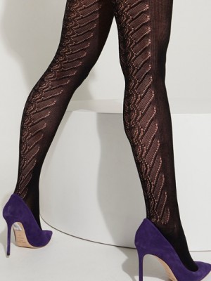 Zase něco jiného než nabízejí běžné obchody s punčochovým zbožím - pletené punčocháče s hladkým předním dílem jsou nesmírně příjemné na noze. Bohatě vzorovaný je zadní díl a vzor sahá až do pasu.