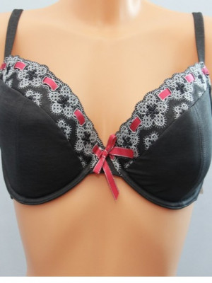 Táto podprsenka - zvedačka robí rovnaké efekty ako push up podprsenka - nadvihne prsia tak, akoby bola zospodu vypodložená. Efekt je opravdivý a potvrdzuje ho aj zvislý šev uprostred košíčku. Okrem príjemného pocitu pri nosení je podprsenka aj pekne zdobená ale len tak, aby výšivka nepresvitala pod oblečením. Je totiž v hornej časti košíčka a už nemá ako presvitať. Zapínanie je hladké na dva háčiky v troch polohách. Ramienka sú nastaviteľné.