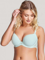 Překrásná hladká plunge podprsenka nejen pro mladé. Plunge znamená, že prsa zakulatí, nadzvedne a udělá krásný výstřih. Ramínka jsou nastavitelná a dají se i vzadu sepnout klipem k sobě, např. při sportu. Na bocích a ramínkách zdobí malé plastické puntíčky.