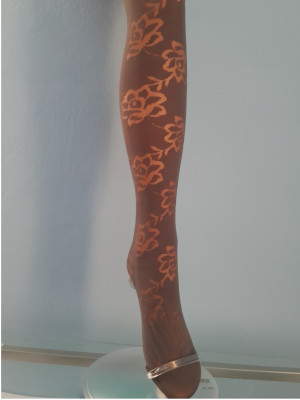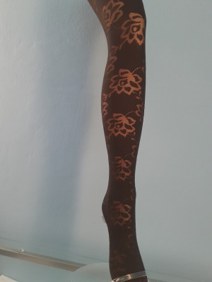 Elastické punčochové kalhoty s efektem lesku a matu /20-80 DEN//, z nichž vystupují motivy růží.