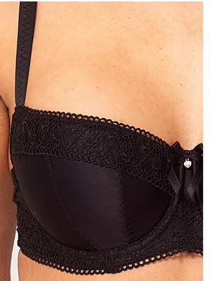 Balkonová podprsenka až do velikosti košíčků H je ze saténu a kolem horního okraje košíčku je ozdobená hrubší krajkou, která ale nepřesahuje přes okraj. Ramínka jsou nastavitelná. Zapínání vzadu je na dva háčky. Kostice podpírá vaše prsa tak, že je krásně nadzvedne a vytvoří pěkný dekolt.