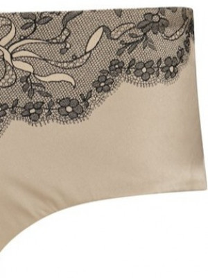 Nádherné saténové kalhotky mají tenounký zadní díl, oproti tomu přední díl je zdobený vkusnou tylovou výšivkou a je podšitý stejnou jemnou látkou jako zadní díl.