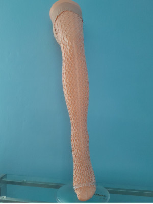 Samodržící punčochy / 50 DEN/ mají středně velká oka. Horní samodržící část je podšita dvěma silikonovým pásy. Tyto "samodržky" jsou velmi flexibilní a perfektně drží na noze.