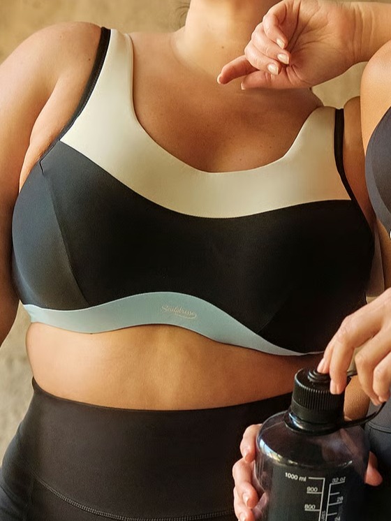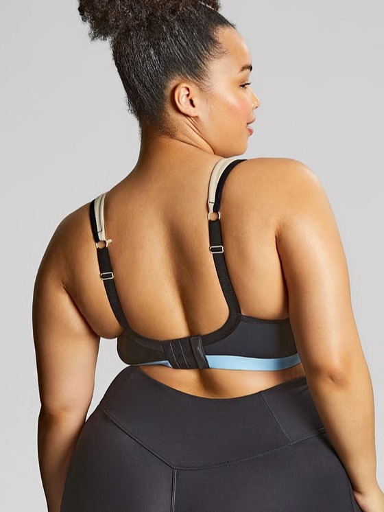 Dokonalá sportovní podprsenka rpo ženy s velkým obvodem. Přestože je nevyztužená, prsa jsou v ní téměř nehybná a při sportu se nehnou. Zapínání je na tři háčky ve třech polohách. Ramínka silná, pevná s možností nastavení. Vzadu je klip, kterým můžete podporu prsou ještě znásobit.