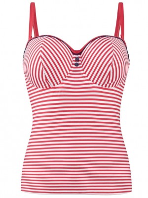 Proužkované tankini s vyztuženou podprsenkou, která má svoje zapínání. Toto umožňuje, že jsou prsa opouzdřená a kostice jim brání v pohybu do stran. Tankini jsou dostatečně dlouhá i pro vyšší postavu. Kalhotky se hodí taky proužkované PAN-CW0199 nebo jednobarevné šortky PAN-SW0399, PAN-CW0026, PAN-CW0196
