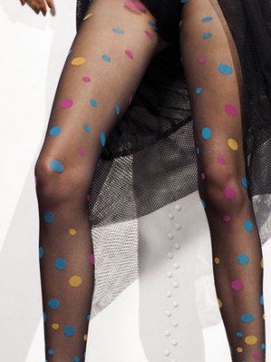 Hladké černé punčocháče s různě velkými barevnými puntíky určitě užijete v nadcházejícím jarním rozmaru.
