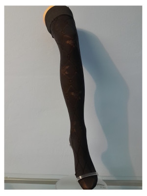 Samodržící punčochy jsou matné - vzor tvoří kosočtverce a v každém z nich je květina. Elegance se snoubí s praktičností.