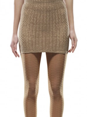 Úzká leč velmi elastická sukni lze využít jako sukni anebo i jako top bez rukávů. Úplet má podobu včelích plástů. Ze stejného materiálu máme skinny pants /kalhoty/ ECA-4380.88.2, šaty ECA-4380.35.A2 nebo velmi módní nabíranou sukni ECA-4380.93.B2