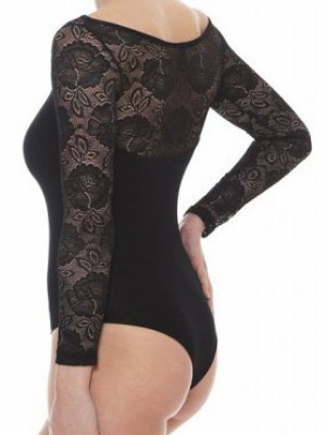 Nádherné modalové body se nejen dobře nosí ale je i zatraceně sexy - dlouhé krajkové rukávy a lodičkový výstřih mu dodávají luxusní vzhled. Zapínání je v klínku na malé cvočky.